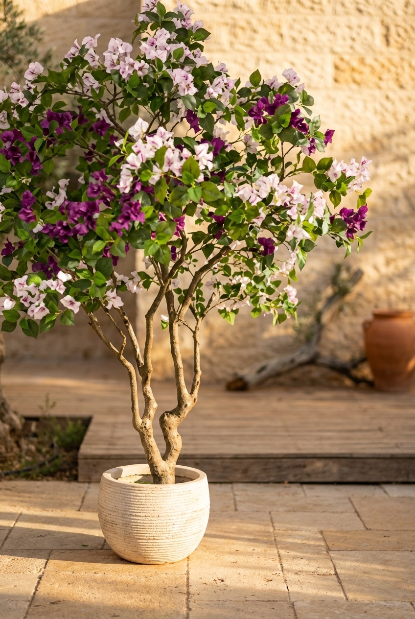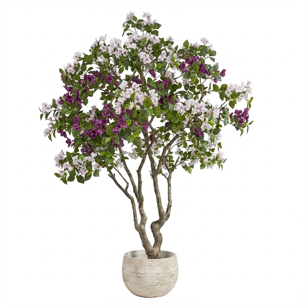 עץ בוגנוויליה מלאכותי פורח, בעל מראה טבעי ומרשים. העץ מתאים לעיצוב פנים וחוץ, ומוסיף צבע ועניין לכל חלל. העץ משתלב נהדר בפינת הסלון, בכניסה לבית או במרפסת.