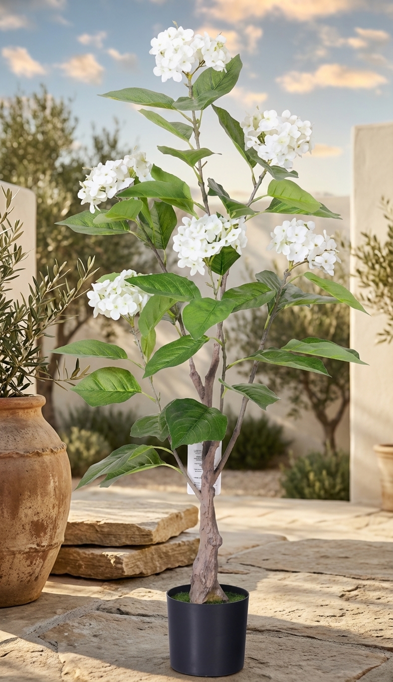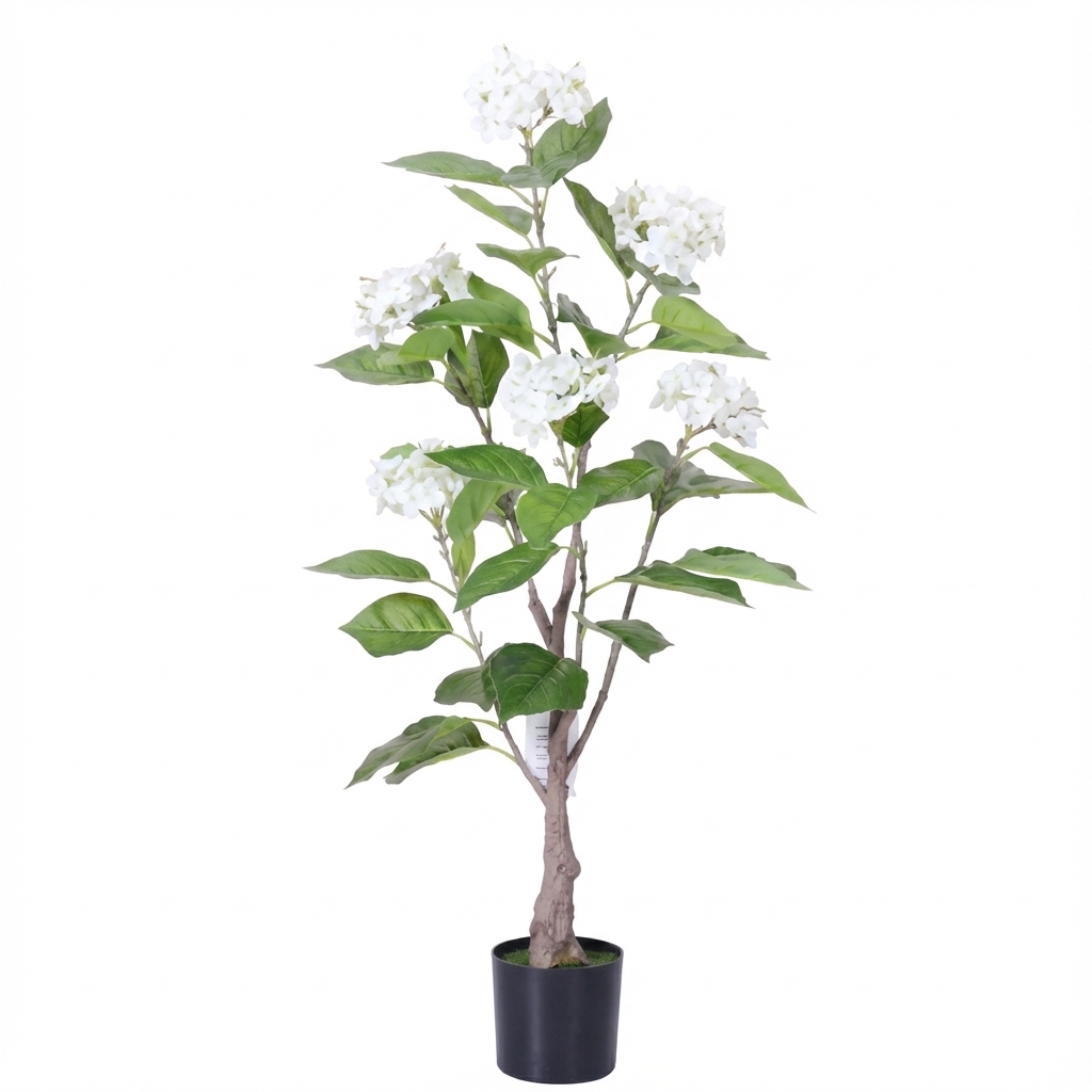עץ הורטנזיה לבנה מלאכותי בעיצוב אלגנטי ומרשים. העץ משלב מראה מציאותי עם פרחי הורטנזיה לבנים ועלווה ירוקה, ומתאים במיוחד למי שמחפש להוסיף נגיעה של טבע ויופי לחלל הבית או המשרד. העץ משתלב נהדר בסלון, בחדר השינה, בכניסה לבית או בפינת האוכל.