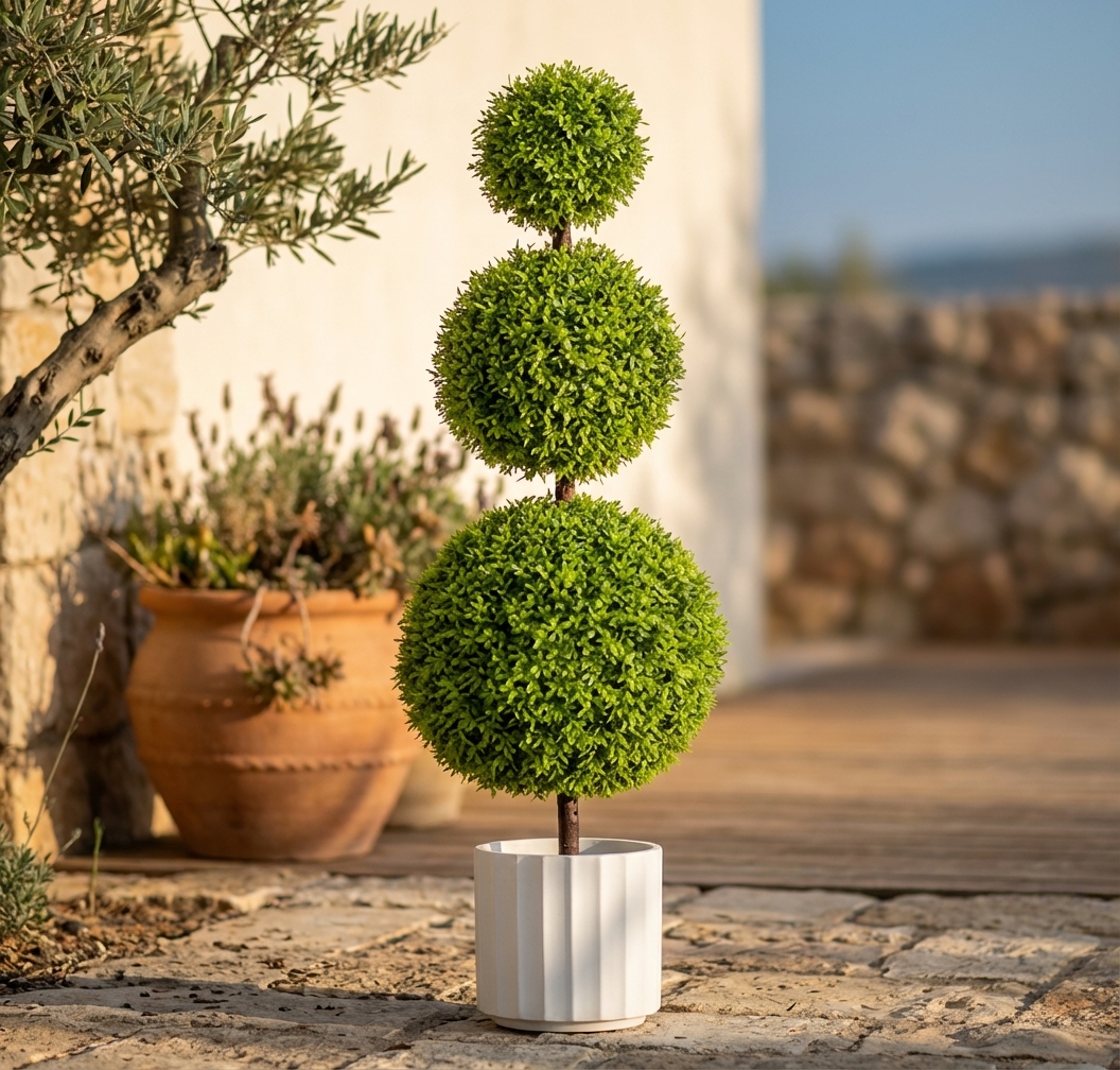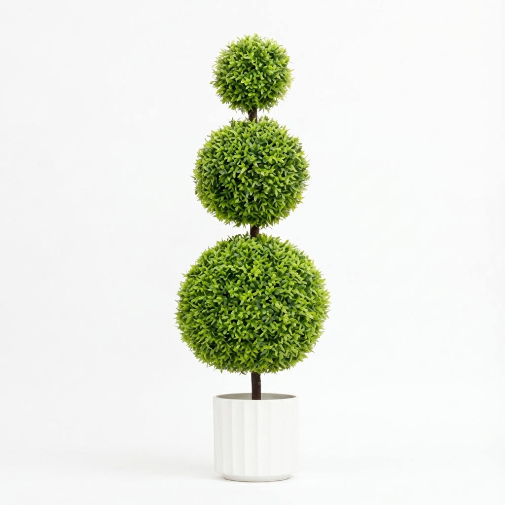 טופיארי מלאכותי שלושה כדורים הוא תוספת אלגנטית ומרשימה לכל חלל. העיצוב המוקפד והמראה הסתווי יוצרים אווירה נעימה וחמימה, המתאימה לעיצוב הבית, המשרד או הגינה המקורה.