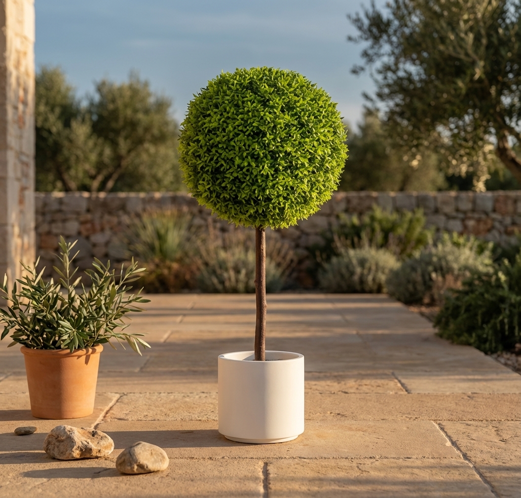 כדור טופיארי מלאכותי המעוצב בקפידה, מוסיף מראה יוקרתי ומרשים לכל חלל. מתאים לעיצוב הבית, המשרד, או כמתנה מקורית לחובבי עיצוב.