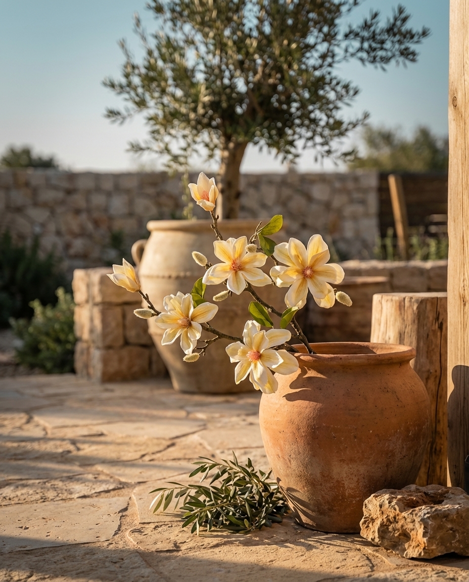 ענף מגנוליה אגם מערבי מלאכותי, המעניק מראה אלגנטי וטבעי לכל חלל. מתאים לעיצוב הבית, המשרד או כחלק מסידורי פרחים יצירתיים.
