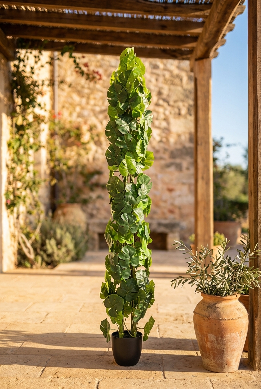 מונסטרה מלאכותית בעיצוב דמוי פגודה היא תוספת נהדרת לעיצוב הבית או המשרד, המעניקה מראה טרופי ומרענן לכל חלל. מתאימה במיוחד למי שמחפש פתרון עיצובי קל לתחזוקה ובעל מראה ירוק וטבעי.