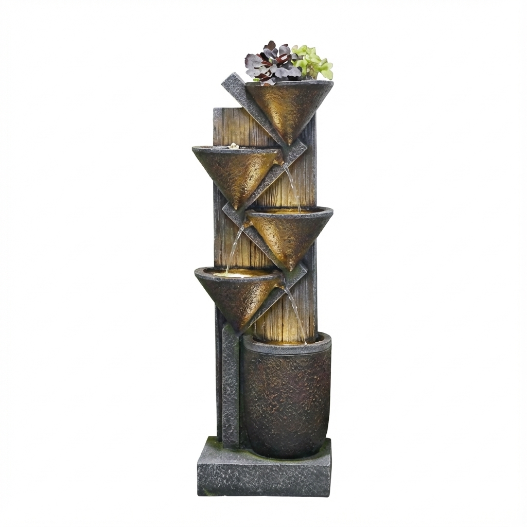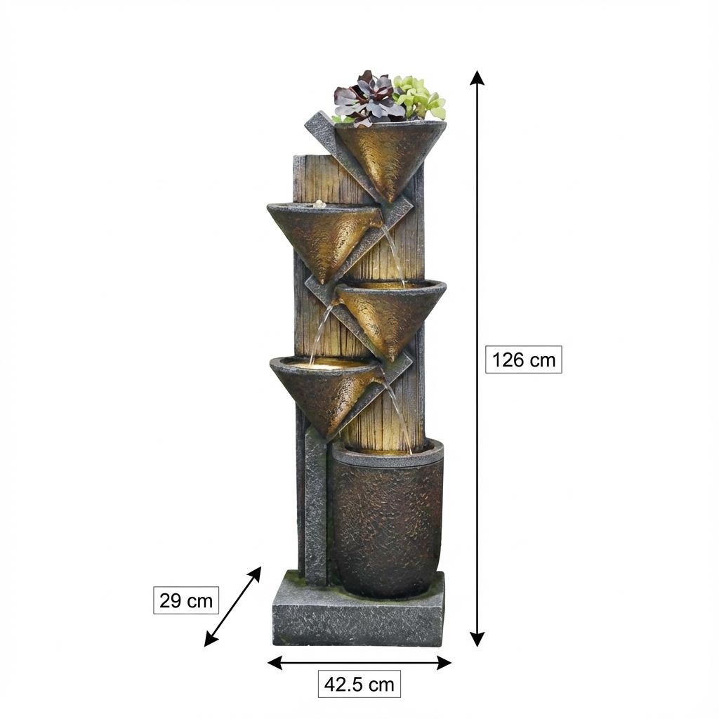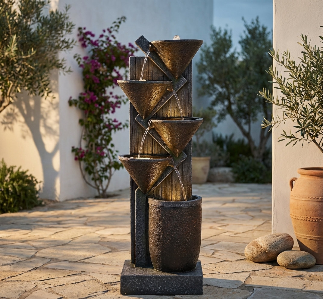 מזרקת מים דקורטיבית, מתאימה להוספת אווירה מרגיעה ונעימה לכל חלל. המזרקה מעוצבת בסגנון מודרני עם מראה חלודה ייחודי.