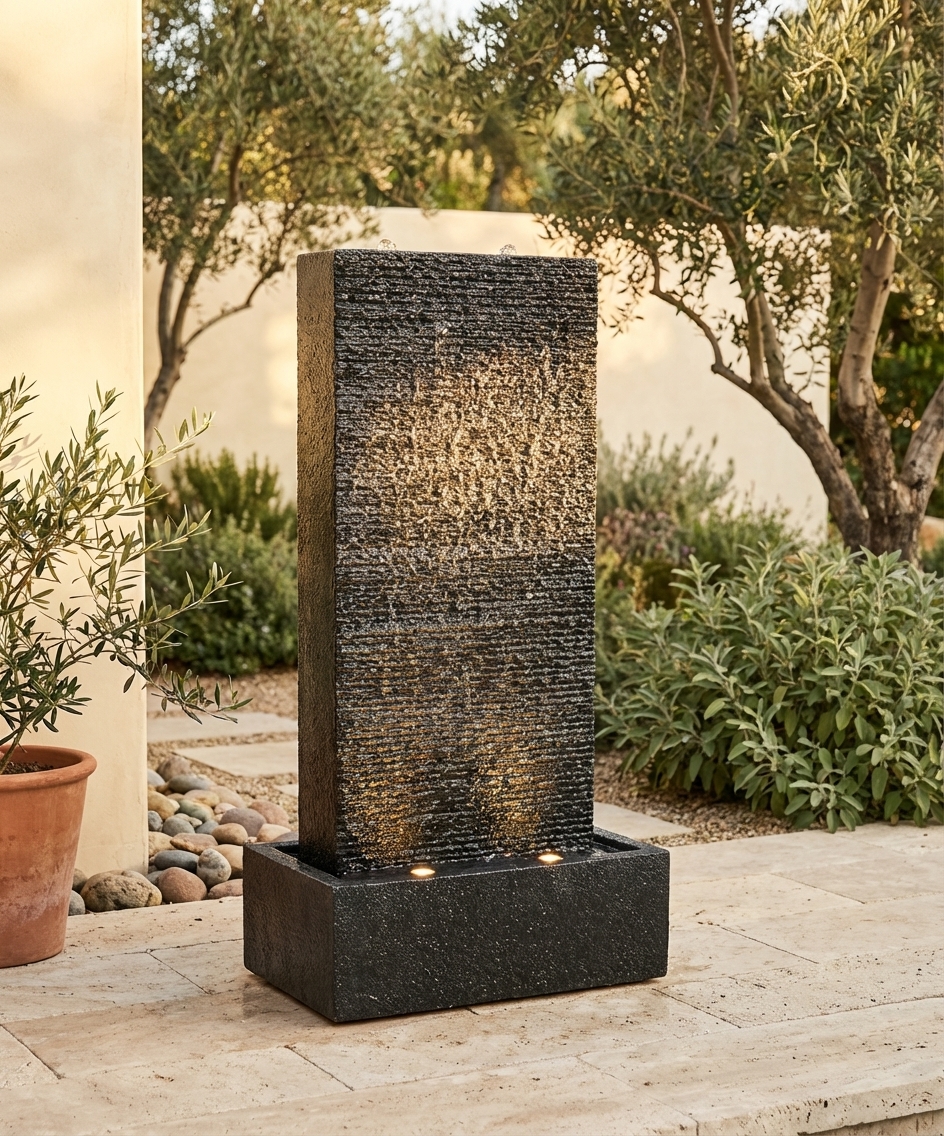 מפל מים מסך מלבני הוא תוספת אלגנטית ומרגיעה לכל חלל. המפל מתאים במיוחד לגינות, מרפסות, חצרות פנימיות ואף לחללים פנימיים המחפשים נגיעה של טבע ושלווה.