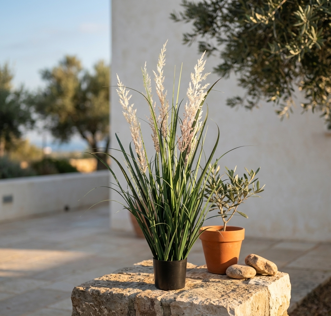 סורגום דקורטיבי מלאכותי וגבוה, מתאים לעיצוב הבית או המשרד, בעל מראה טבעי ומרשים.