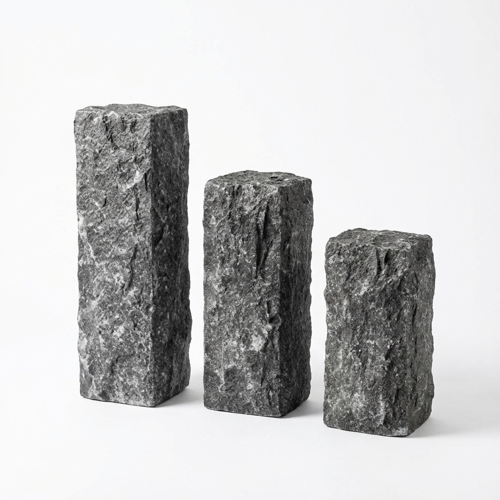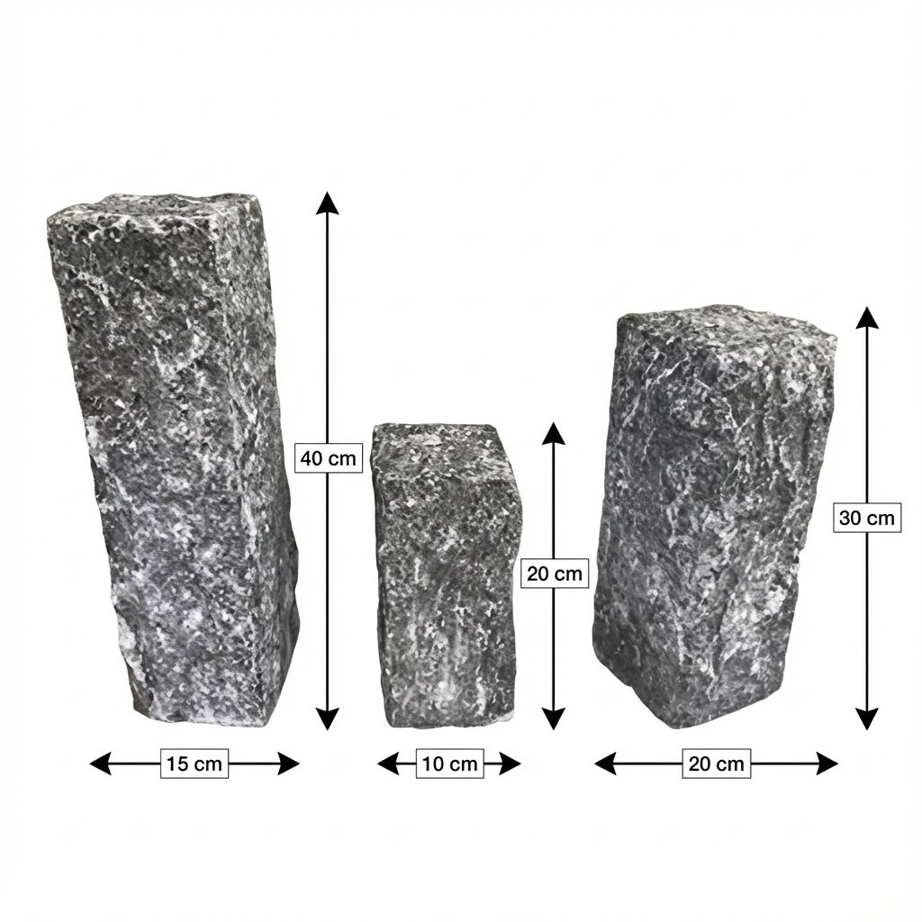 סט 3 אבני נוי גרניט אפור כהה, מושלם להוספת טאץ' טבעי ומיוחד לגינה או לחצר. האבנים מתאימות לעיצוב בסגנון מודרני או כפרי.