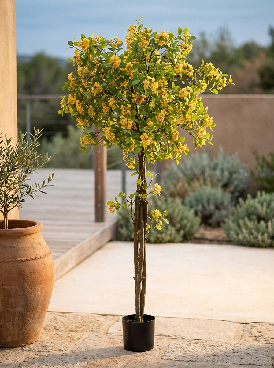 עץ אי אביבי מלאכותי בעל 3 גזעים, המעניק מראה טבעי ומרשים. מתאים לעיצוב הבית, המשרד או כל חלל אחר הזקוק לנגיעה של רעננות אביבית.