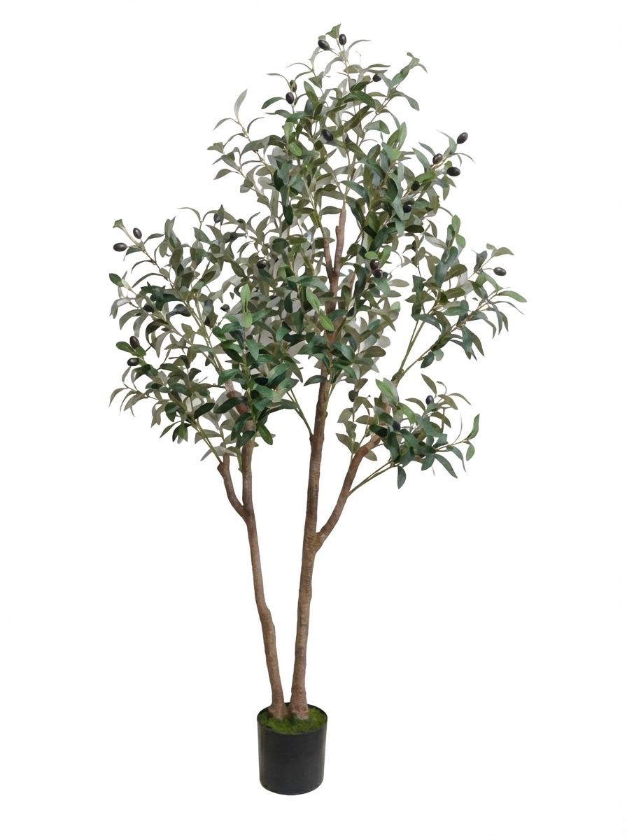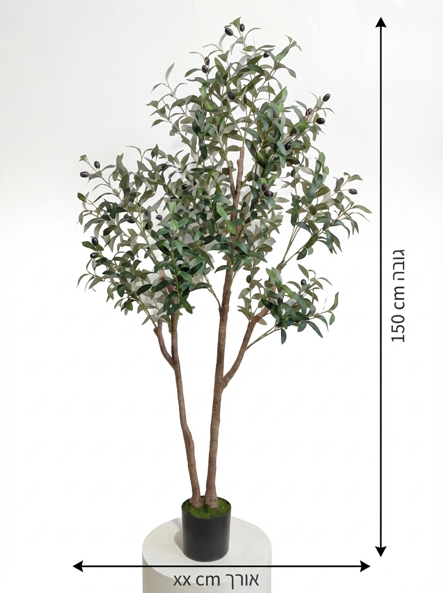 עץ זית מלאכותי בעל מראה טבעי, המגיע בעציץ שחור. מתאים לעיצוב הבית או המשרד.