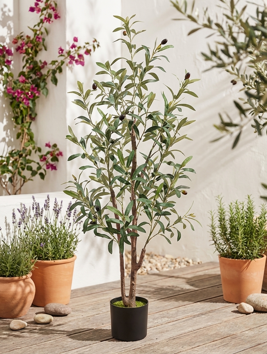 עץ זית מלאכותי מהווה פתרון מצוין למי שרוצה ליהנות ממראה של עץ זית בבית או במשרד, ללא צורך בתחזוקה שוטפת. מתאים במיוחד לחללים פנימיים ומוסיף מראה טבעי ומרענן.