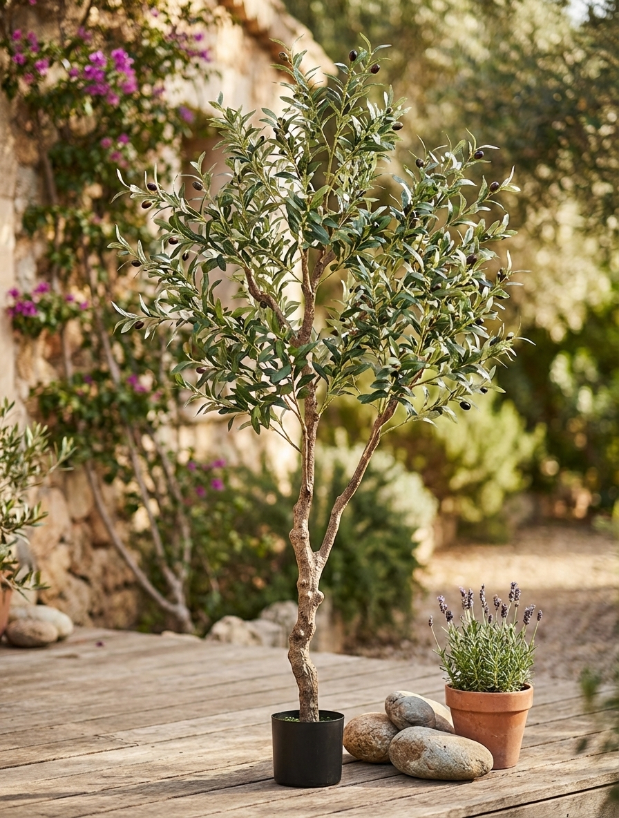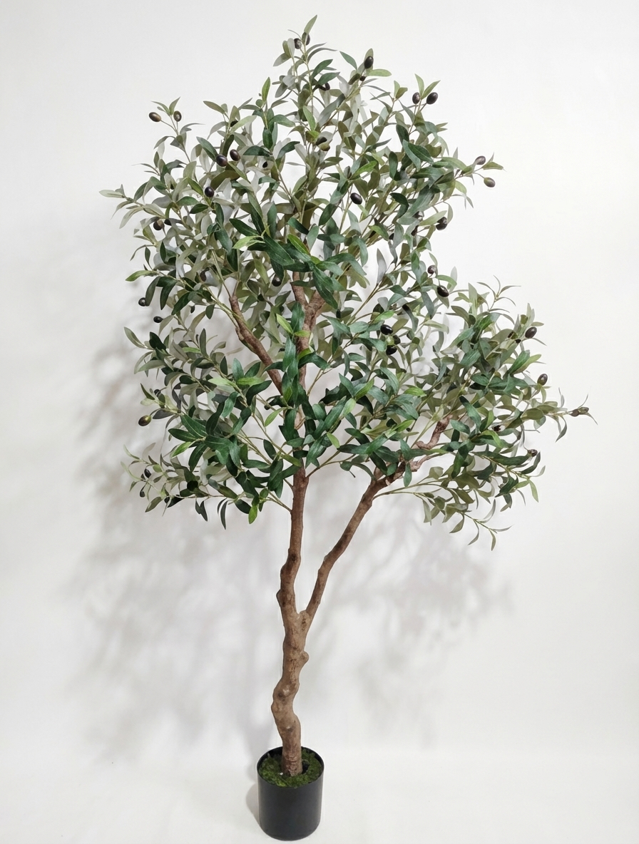 - עץ זית מלאכותי עם עלים ירוקים כהים וזיתים קטנים