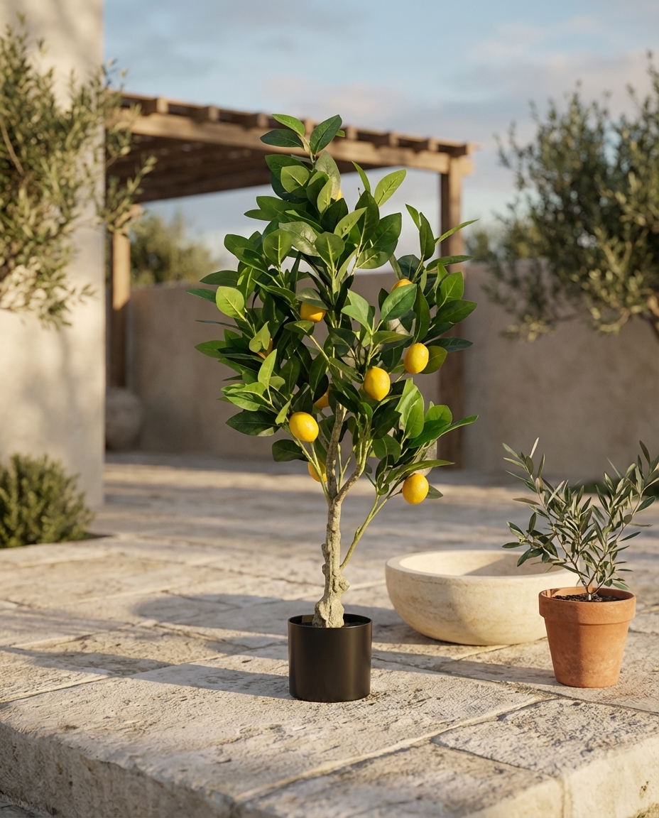 עץ לימון מלאכותי בעציץ שחור הוא תוספת נהדרת לכל חלל, המעניקה מראה רענן ואלגנטי ללא צורך בתחזוקה. מתאים במיוחד למי שמחפש פתרון קל ונוח לעיצוב הבית או המשרד. זמין במגוון גדלים.