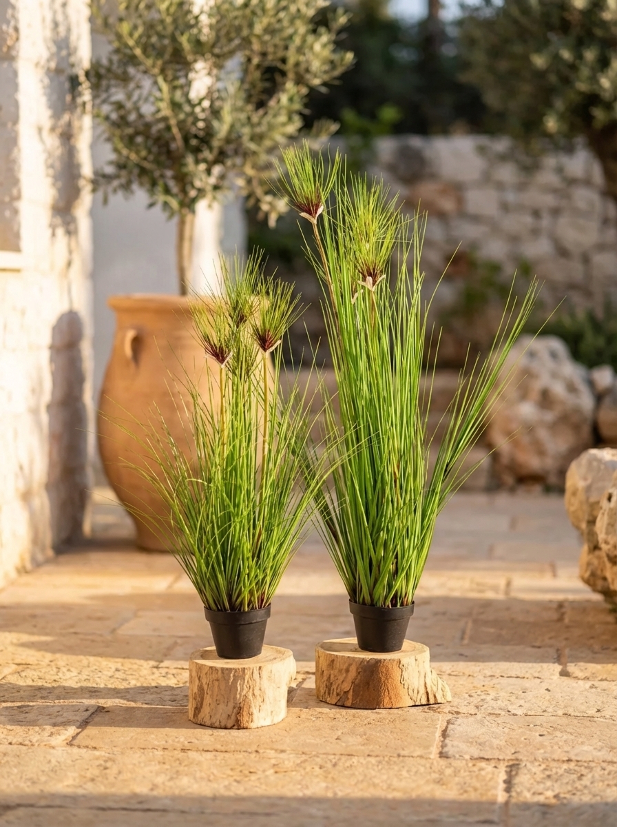 עציץ במבוק מים מלאכותי, מתאים לעיצוב הבית והמשרד. עציץ דקורטיבי ומרשים במראה טבעי.