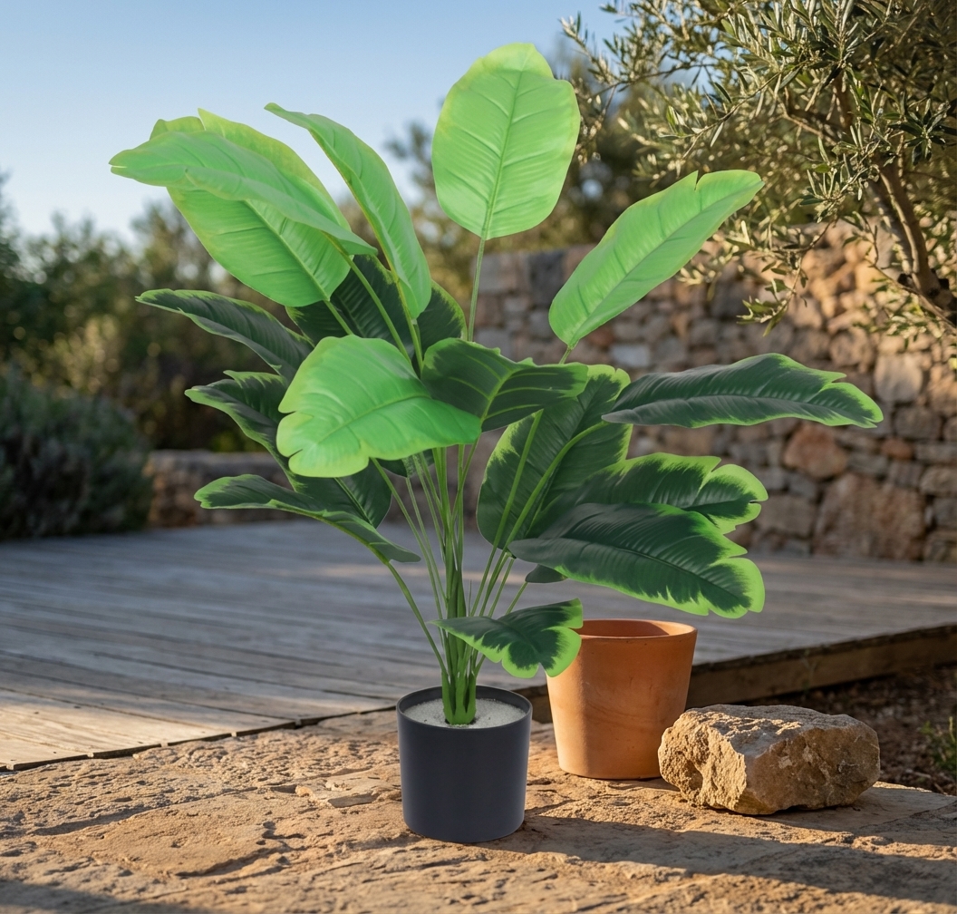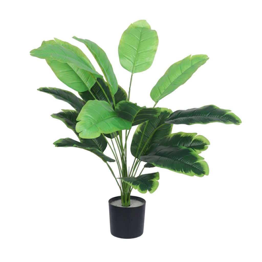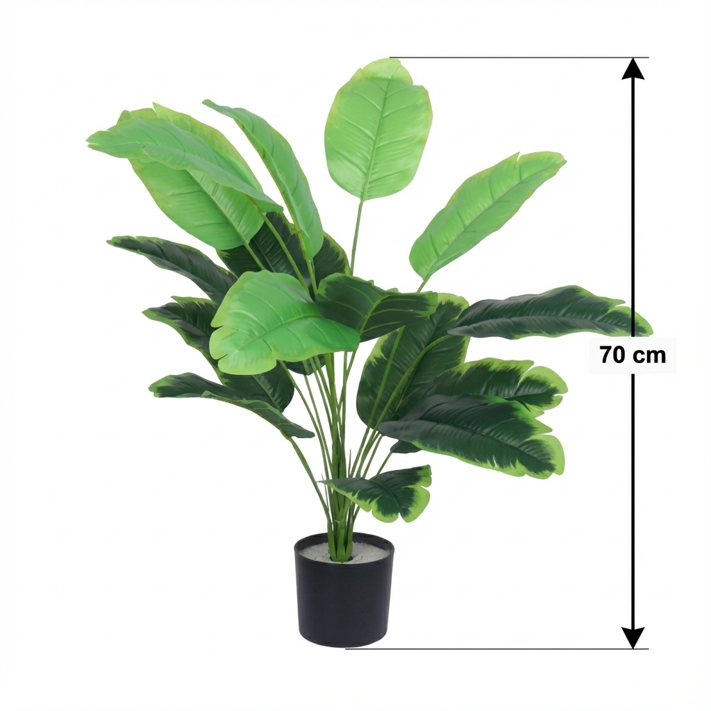 צמח עלים טרופיים מלאכותי בעציץ שחור הוא פתרון דקורטיבי מושלם למי שמחפש להוסיף מגע של טבע ורעננות לחלל, ללא צורך בתחזוקה. הצמח מתאים במיוחד לעיצוב הבית, המשרד או המרפסת, ומוסיף אווירה טרופית נעימה.