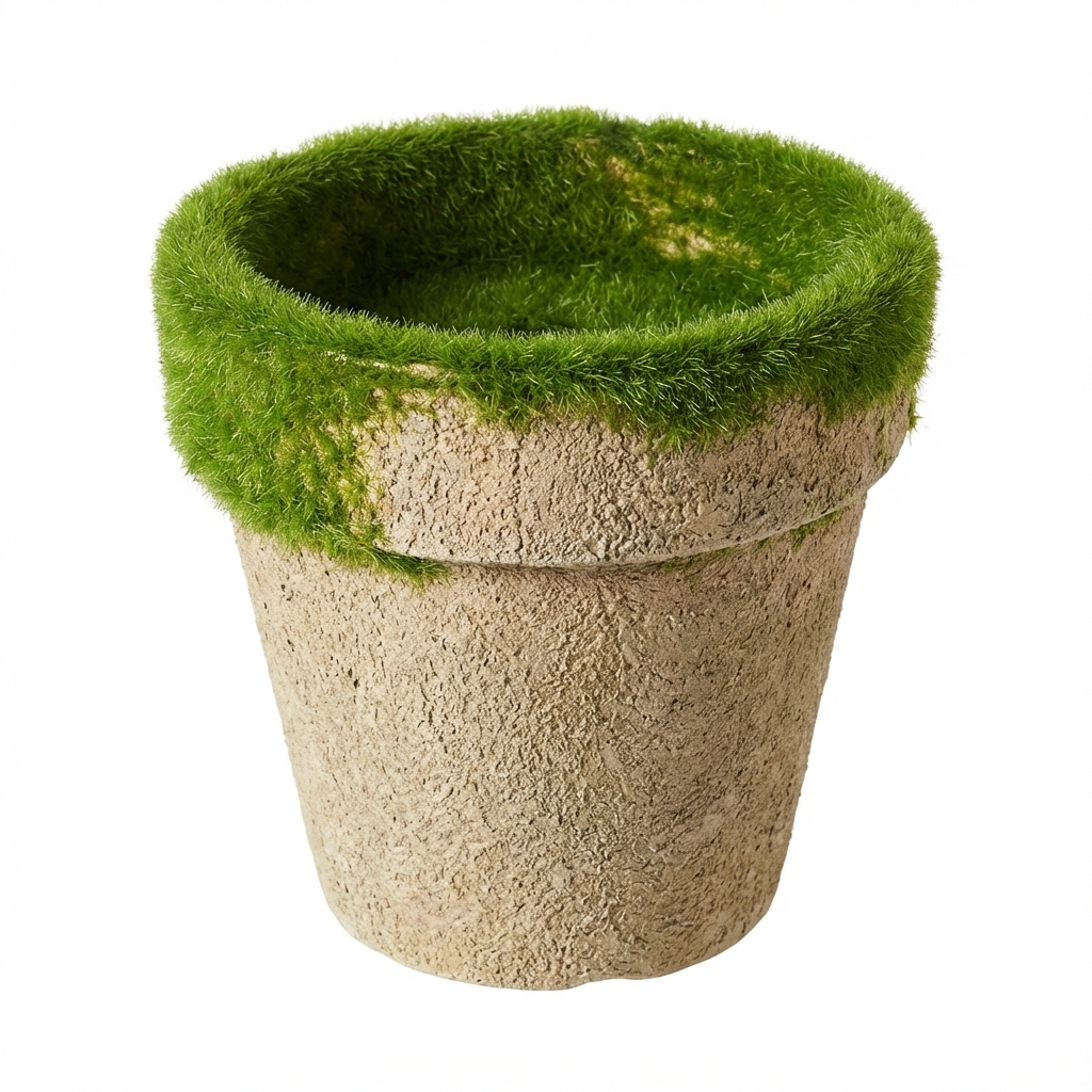 עציץ נייר דקורטיבי המצופה בחומר דמוי טחב, המעניק לו מראה טבעי וייחודי. מתאים לשילוב צמחייה עונתית או רב-שנתית, כמו גם צמחים מלאכותיים. מתאים לעיצוב פנים וחוץ.