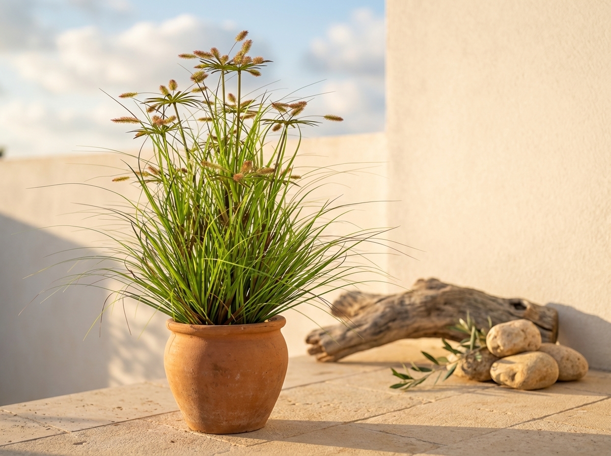 עציץ עשב זנב שועל מלאכותי, המעניק מראה רענן וטבעי לכל חלל. מתאים לעיצוב הבית, המשרד או כתוספת דקורטיבית לגינה ולמרפסת.