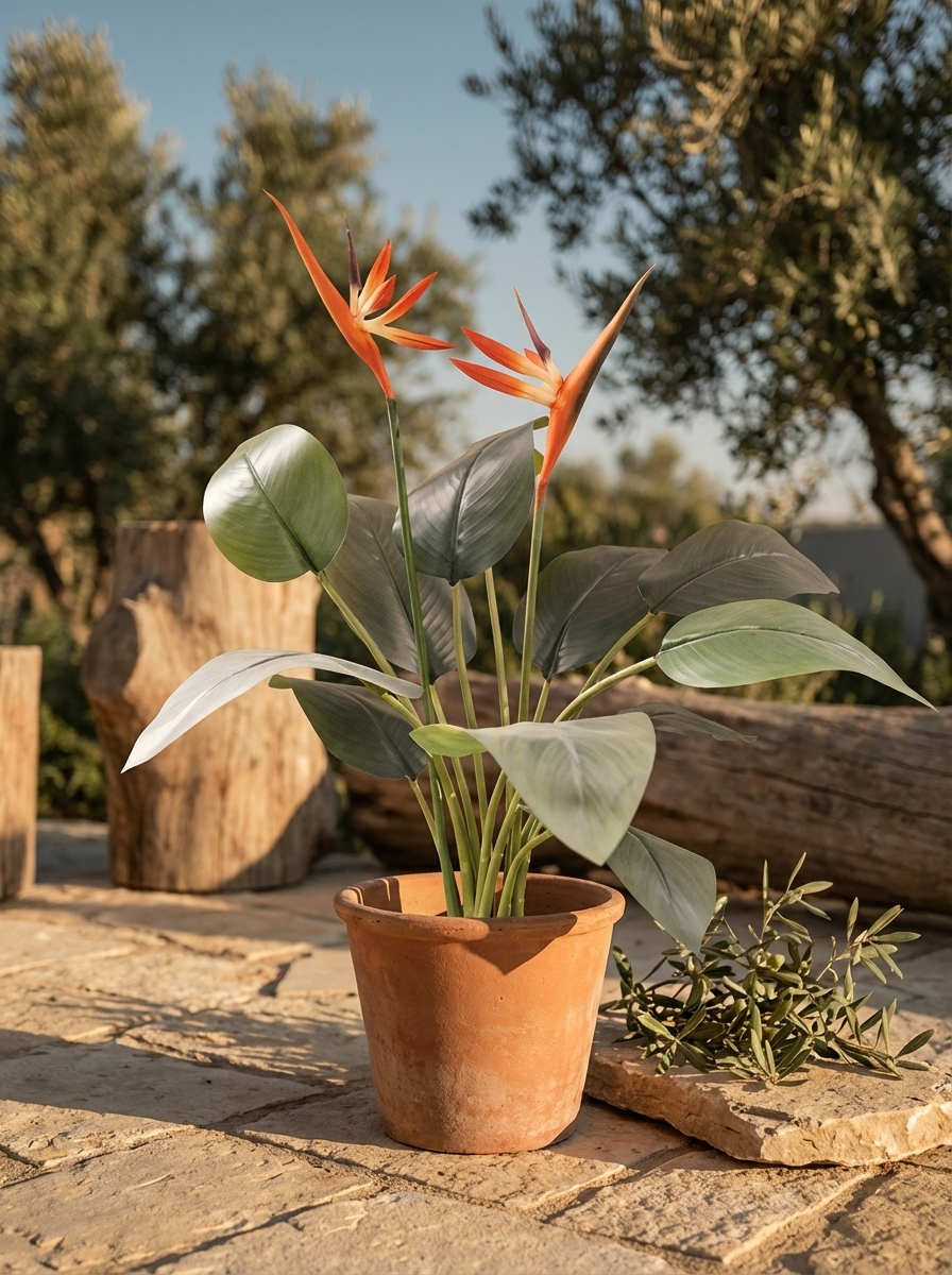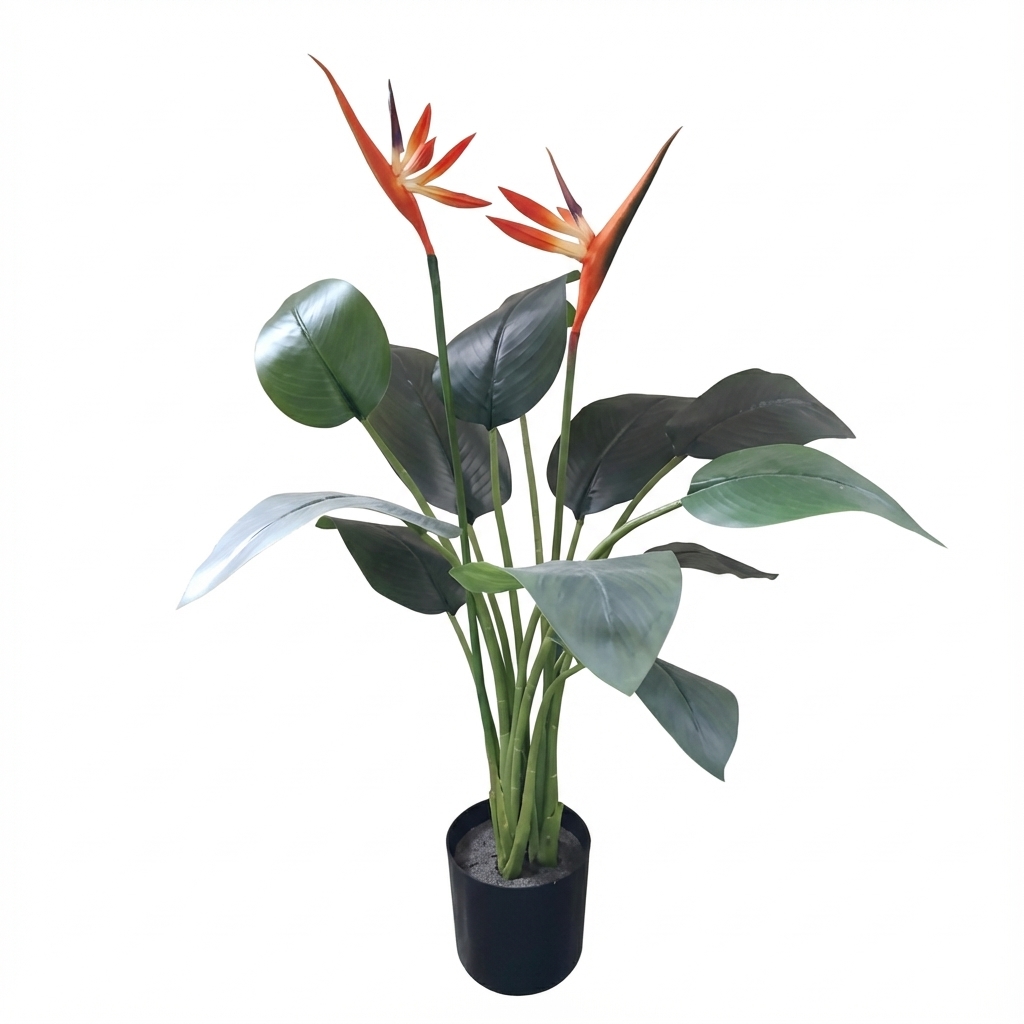 עציץ ציפור גן עדן מלאכותי בעיצוב מרהיב, המדמה צמח אמיתי. מושלם לעיצוב הבית, המשרד או כל חלל אחר הזקוק לנגיעה של יופי טבעי. מתאים למי שמחפש פתרון קל לתחזוקה וחסכוני.