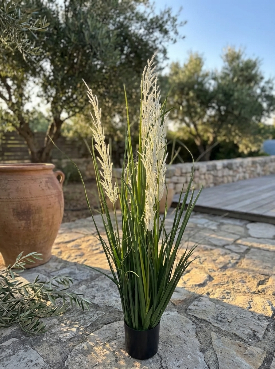 עשבוני זנב שועל מלאכותי בעציץ שחור, מוסיף מראה טבעי ורענן לכל חלל. מתאים לעיצוב הבית, המשרד או מרפסת.