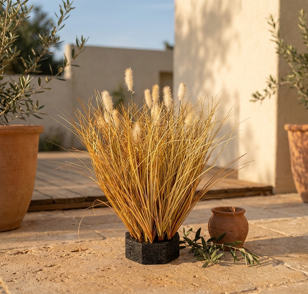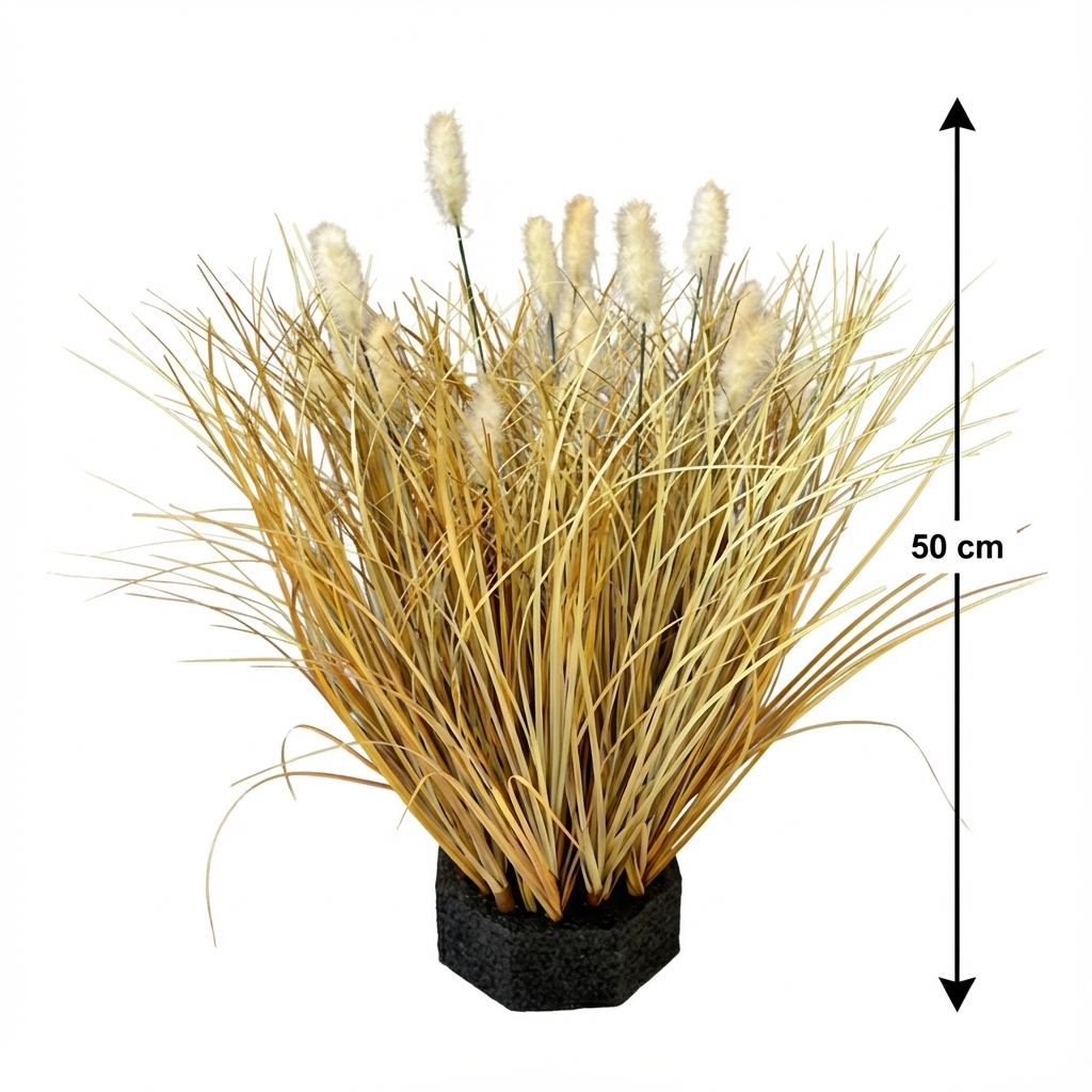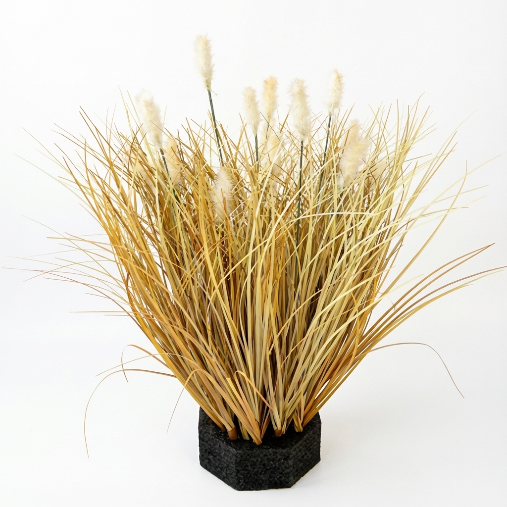 עשב זחל סתווי מלאכותי, בעיצוב ריאליסטי ומרשים. מושלם לעיצוב הבית, המשרד או כל חלל אחר הזקוק לנגיעה טבעית וחמימה. העשב משלב גווני חום וקרם, היוצרים מראה סתווי אותנטי.