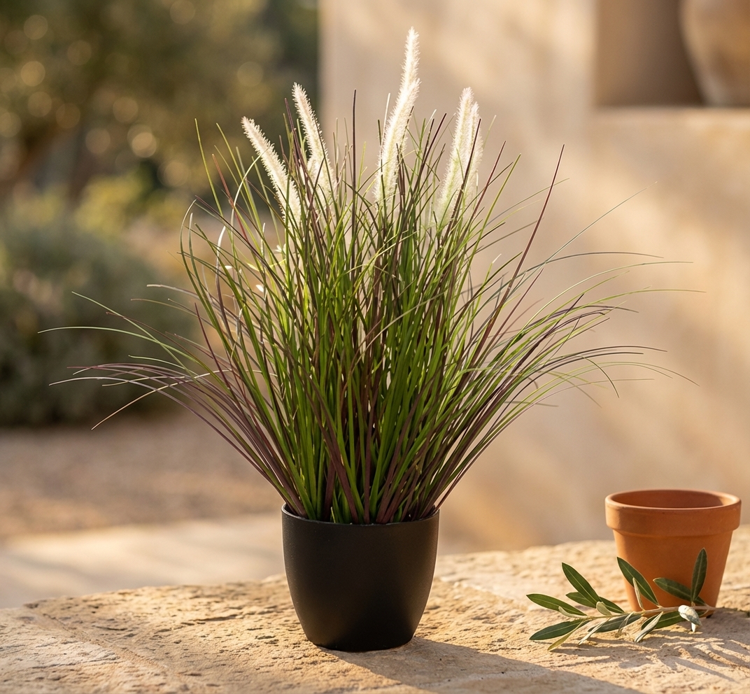 עשב נוי מלאכותי, המשתלב נהדר בכל חלל ומכניס מראה רענן וטבעי. מתאים לעיצוב הבית, המשרד או המרפסת, ומוסיף טאץ' של ירוק וחיים.