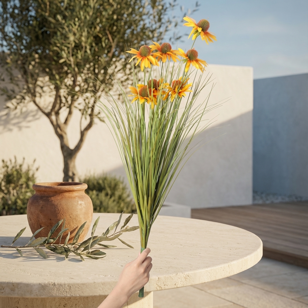 צרור אכינצאה מלאכותית, המעניק מראה טבעי ורענן לכל חלל. מתאים למי שמחפש פתרון דקורטיבי קל לתחזוקה ובעל מראה נעים.