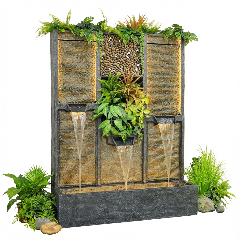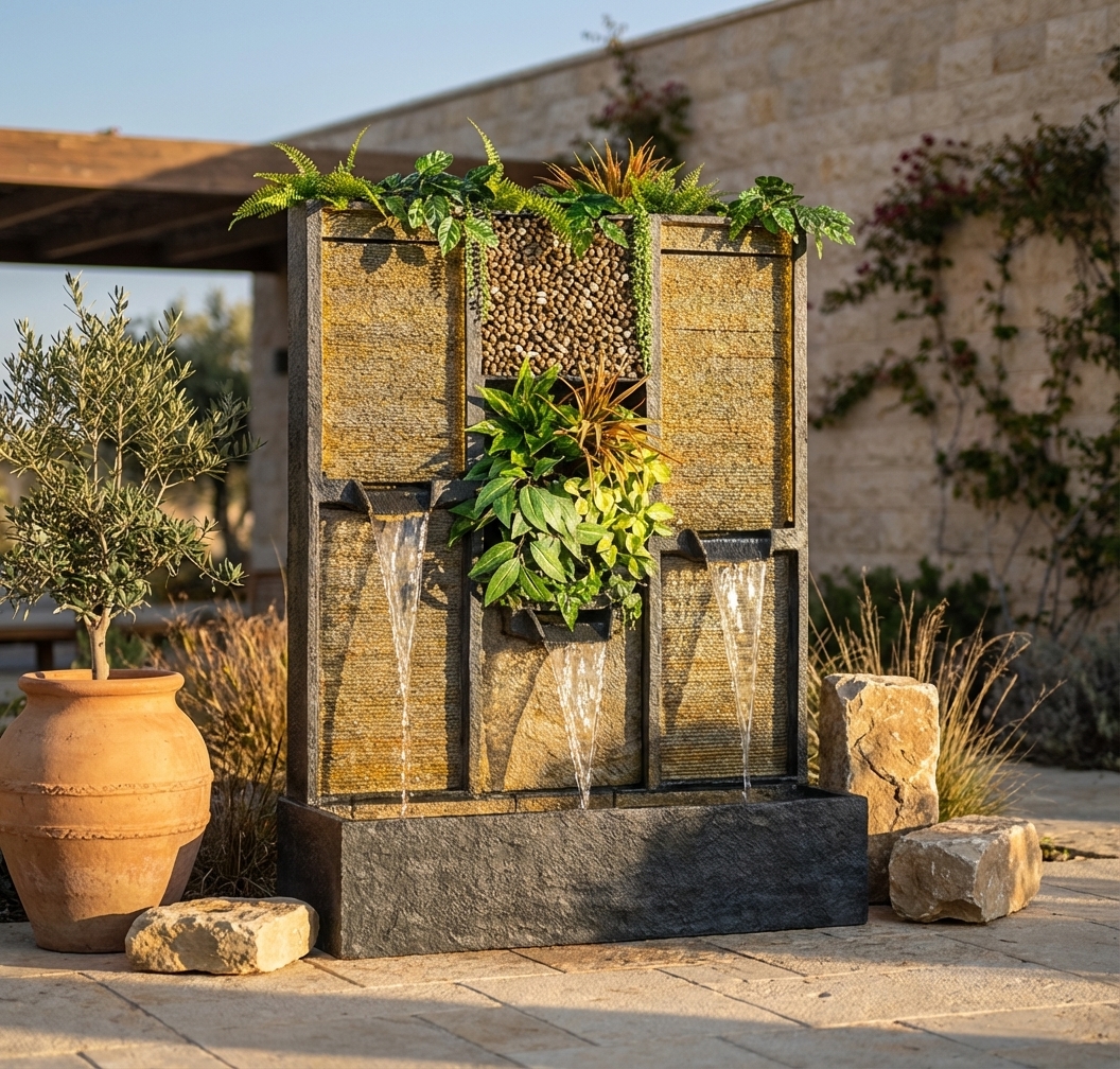 קיר מים דקורטיבי משלב אלמנטים של טבע ומים, ומוסיף מראה יוקרתי לחלל. מתאים לעיצוב פנים וחוץ, לבית ולמשרד.