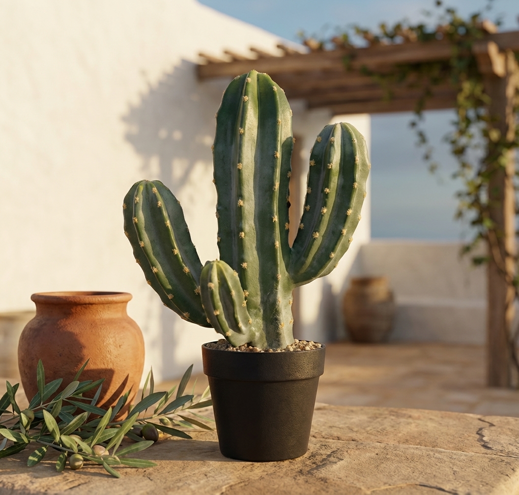 קקטוס מלאכותי ארבעה ראשים, פריט עיצוב מושלם להוספת מגע של טבע ורעננות לחלל הבית או המשרד. מתאים למי שמחפש פתרון דקורטיבי קל לתחזוקה ובעל מראה טבעי.