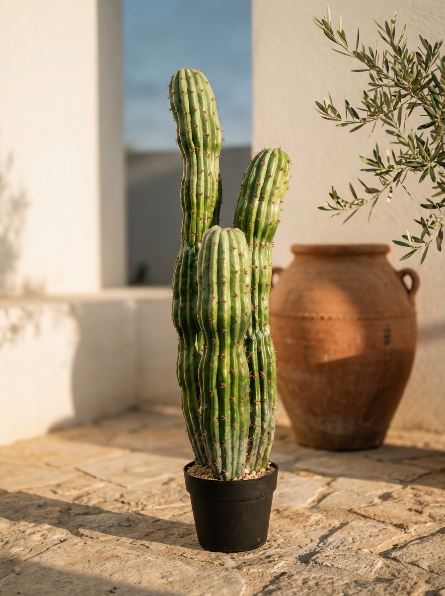 קקטוס מלאכותי שלושה גזעים בגובה 90 ס"מ, פתרון דקורטיבי מושלם למי שמחפש להוסיף מגע של טבע לחלל שלו בלי להתעסק בתחזוקה. מתאים במיוחד לבתים, משרדים או חללים ציבוריים.